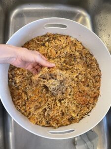 水苔を水でふやかします。ふやかし方は適当です。水に漬けたらすぐふやけます。
