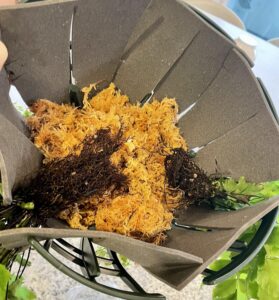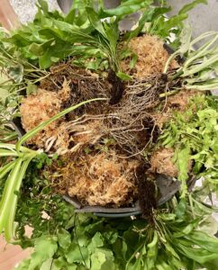今回は室内にハンギングするため、水苔に植えることにしました。
