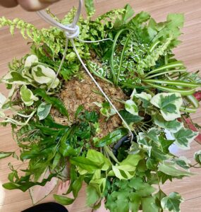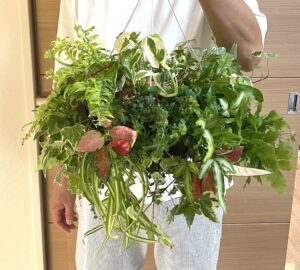 本日は観葉植物だけを使ったハンギングの寄せ植えを作ります。